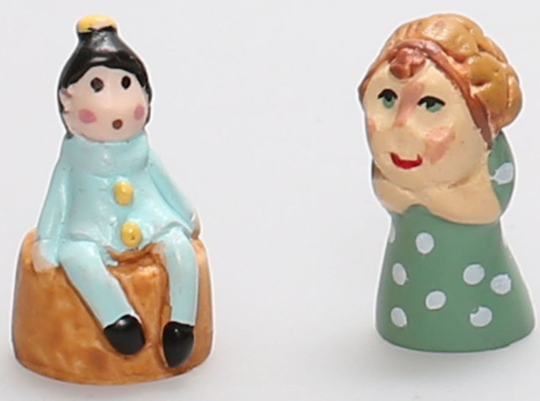 2 miniatuur beeldjes voor poppenhuis afmeting 2 x 1 cm