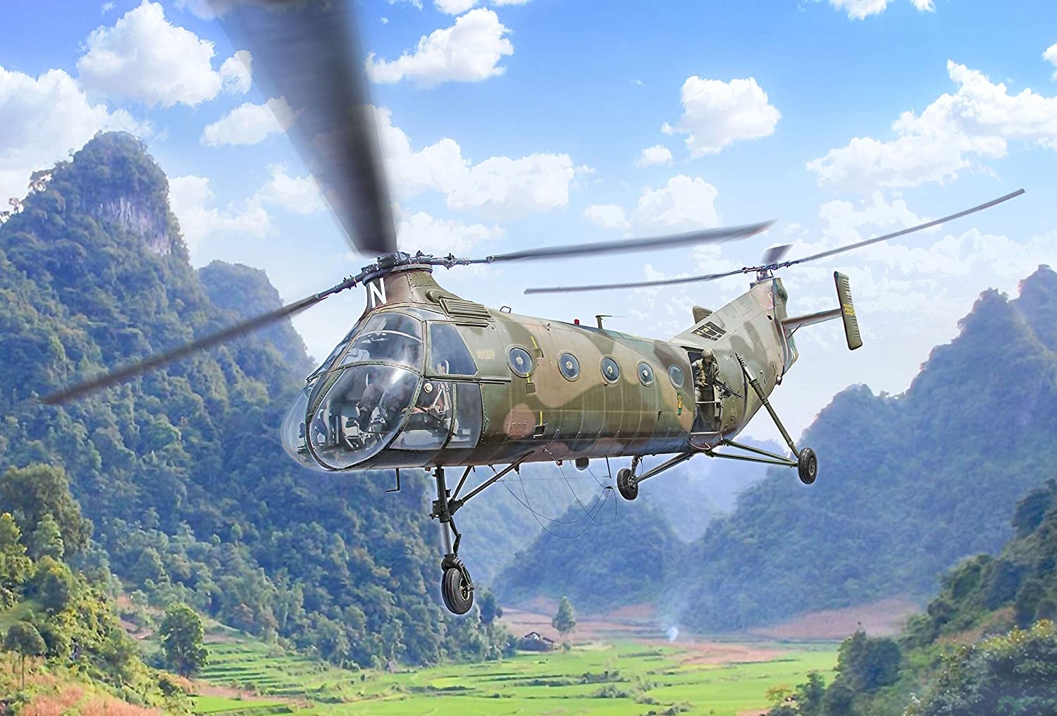 Bouw en verf H-21C Flying Banana Gunship-helikopter