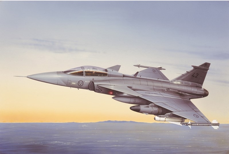 Bouwbare JAS 39 A Gripen gevechtsvliegtuig met verf