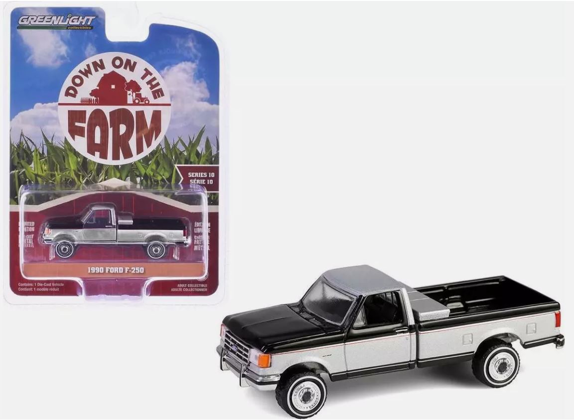 FORD F-250 1990 zwart en grijs uit de DOWN ON THE FARM serie 10 in blisterverpakking