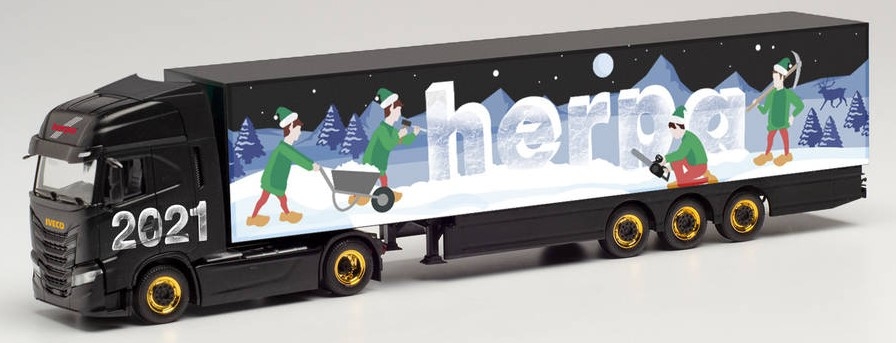 IVECO S-Way 4x2 met aanhanger bestelwagen 3 assen Kerstmis HERPA 2021