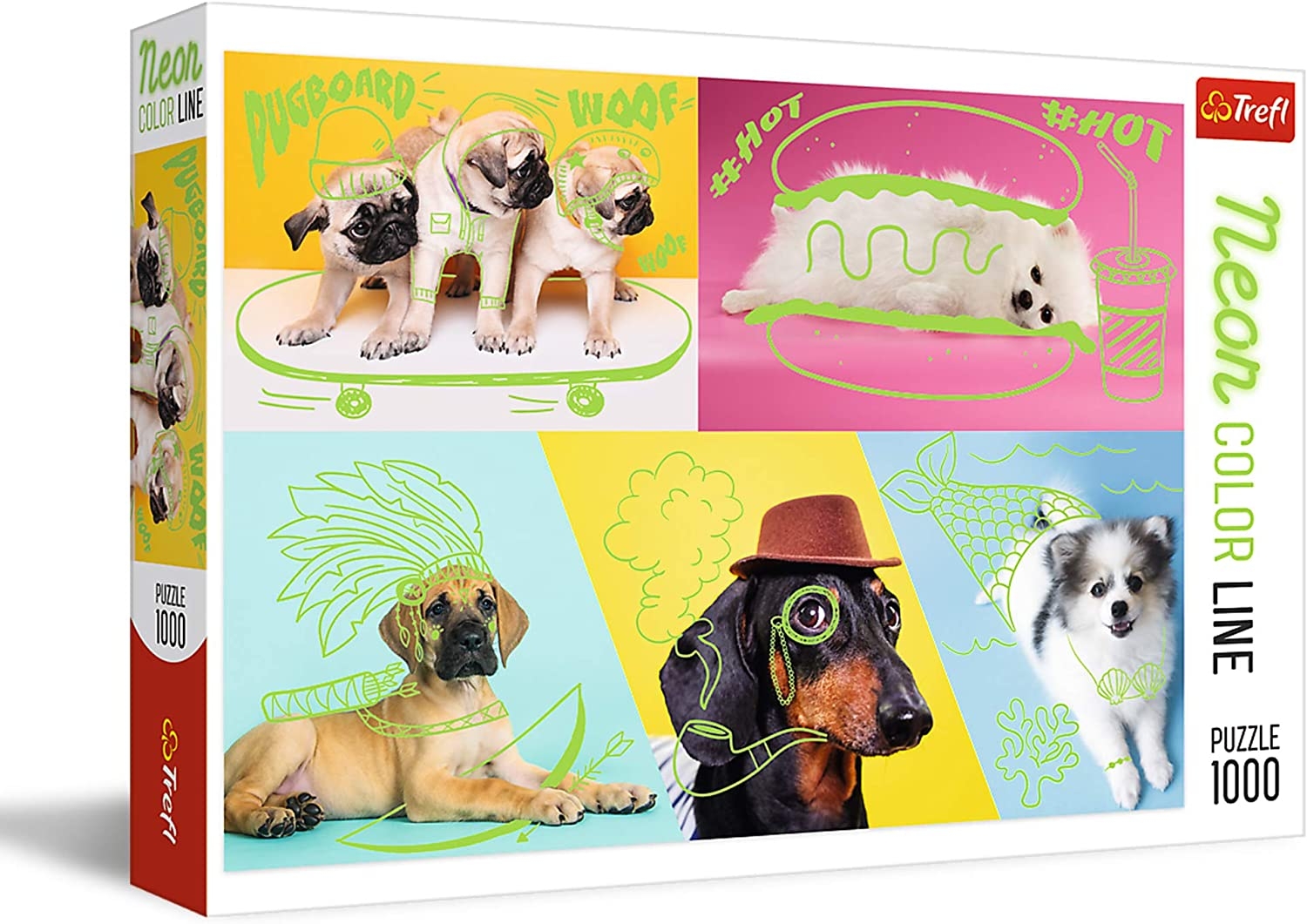 Puzzel 1000 stukjes Honden met groene neonkleur