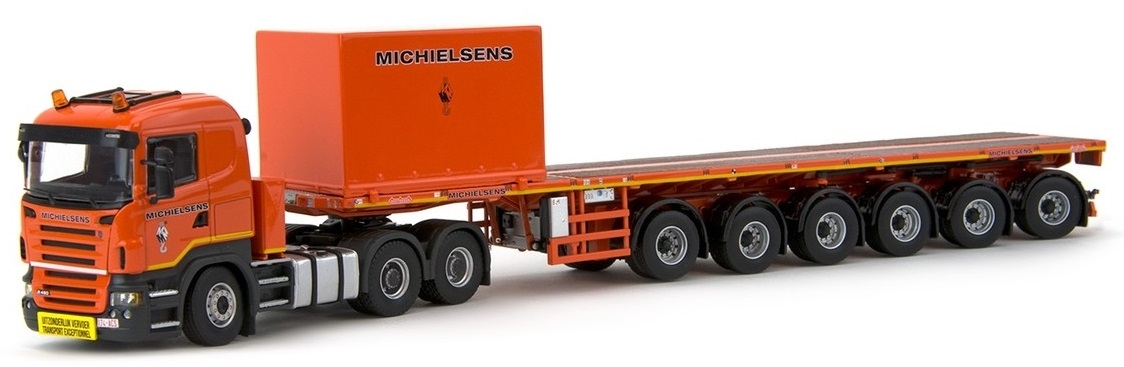 SCANIA R5 6x4 met semi flatbed 6 assen ballasttransport voor kraan met container MICHELSEN