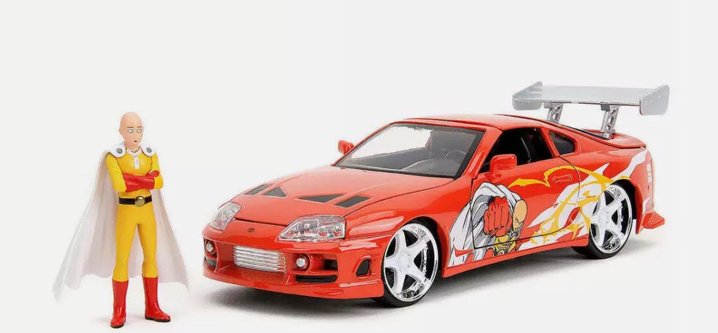 TOYOTA Supra 1995 rood met figuirne ONE PUNCH MAN