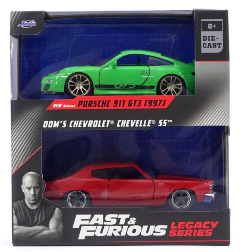 Twin Pack - PORSCHE 911 GT3 RS groen met CHEVROLET Chevelle rood - SNEL en WILDIG