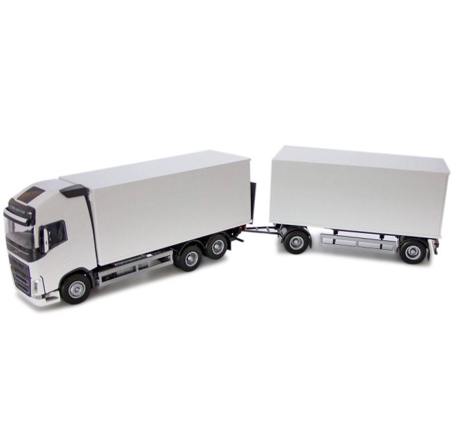VOLVO FH 6x4 wit met 1 + 1 asaanhangwagen en achterklep